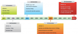 Através de uma pesquisa realizada pelo grupo Gartner as vendas de Wi-Fi devem ultrapassar os bilhão de unidades realizadas em 2010 para mais de três bilhões em 2015, isso devido ao padrão 802.11ac, o qual é o sucessor natural do atual 802.11n, por isso resolvemos escrever esse artigo com algumas características desses novos padrões que estão sendo desenvolvidos. Veja na figura abaixo uma mapa da evolução dos padrões wireless.